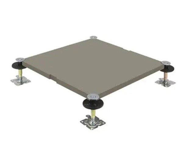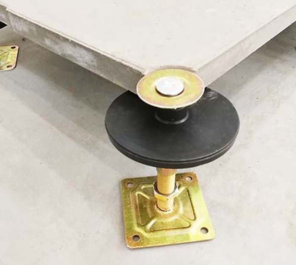 地板四角鍍鋅底座支承,不帶橫梁系統。每塊地板四角有90度圓弧,四塊板組合而成后形成一個圓,有一個鐵制螺母壓角固定。